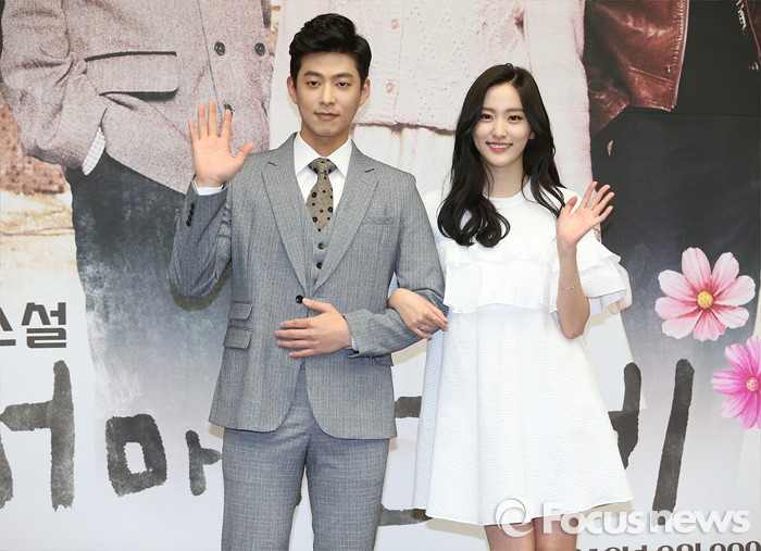 (서울=포커스뉴스) 8일 오후 서울 영등포구 KBS 국제회의실에서 열린 KBS2 TV소설 '내 마음의 꽃비' 제작발표회에 참석한 배우 이창욱(왼쪽)과 나해령이 포토타임을 갖고 있다.