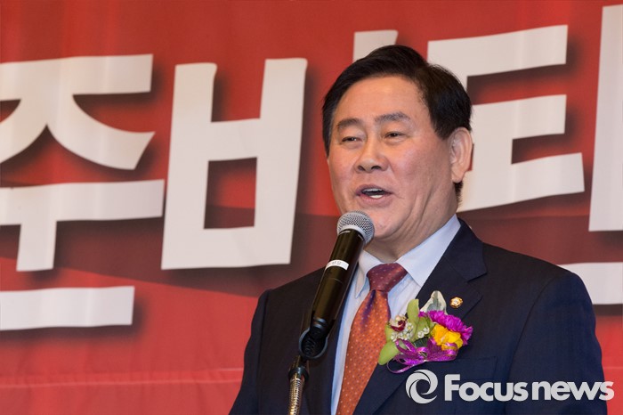 (서울=포커스뉴스) 최경환 새누리당 의원이 8일 오후 서울 마포구 신촌 케이터틀 컨벤션홀에서 열린 새누리당 서울시당 서대문갑 당원교육 및 전진대회에 참석해 인사말을 하고 있다.