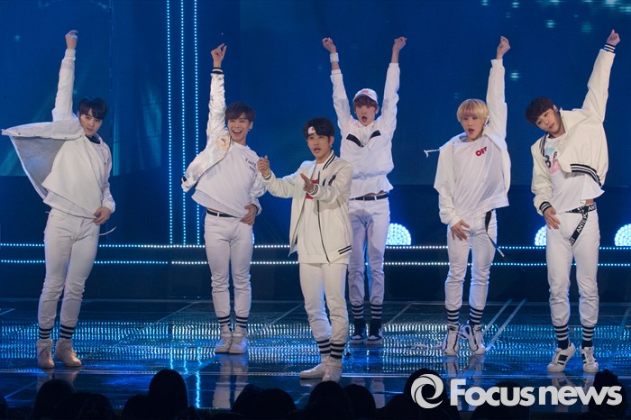 (서울=포커스뉴스) 8일 오후 서울 마포구 SBS프리즘 타워에서 열린 '2016 더쇼 62회' 생방송 촬영 현장에 아이돌 그룹 아스트로가 무대를 선보이고 있다.