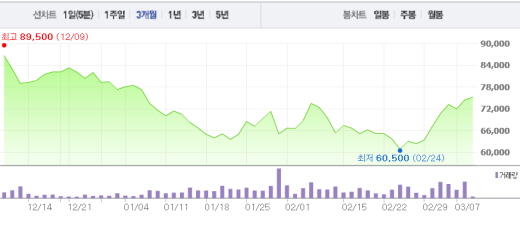 성준원 신한금융투자 연구원은 “면세점 정책에 대한 ‘규제 완화’ 기대감이 있다”며 “정책 불확실성으로 크게 하락했던 호텔신라의 주가는 회복이 가능해 보인다”고 예상했다.호텔신라 주가흐름<사진출처=네이버 캡쳐>