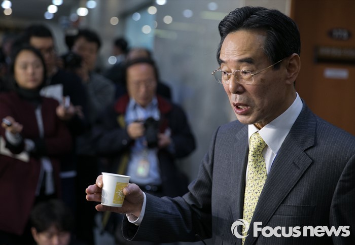 (서울=포커스뉴스) 홍창선 더불어민주당 공천관리위원장이 9일 오전 서울 여의도 국회 정론관에서 20대 총선 1차 경선지역과 관련 브리핑을 마친 뒤 취재진 질문에 답하고 있다. 홍 위원장은 이날 브리핑 중 취재관행을 바꾸기 위한 언론인과 대화를 하던 중 일부 항의를 받았다.