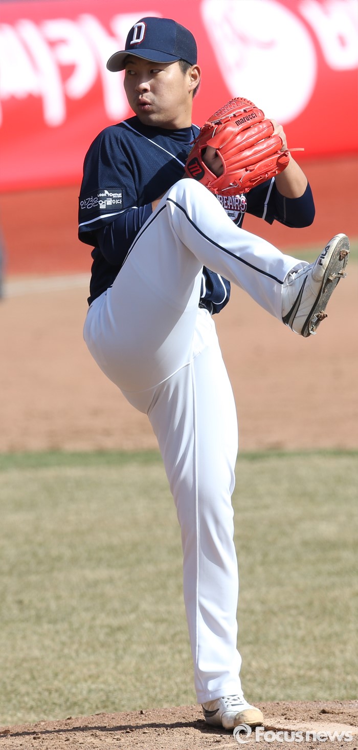 (수원=포커스뉴스) 9일 수원 kt위즈파크에서 열린 2016 KBO리그 시범경기 두산-kt 경기에서 두산 투수 이현호가 5회 무사 1,2루에서 등판해 투구하고 있다.