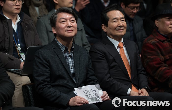 (서울=포커스뉴스) 안철수 국민의당 상임공동대표가 9일 오후 서울 종로구 아름다운극장에서 열린 인공지능과 바둑 심포지움 콘서트 '이세돌-알파고 바둑 대국'에 참석해 정세균 더불어민주당 의원과 관람하고 있다.