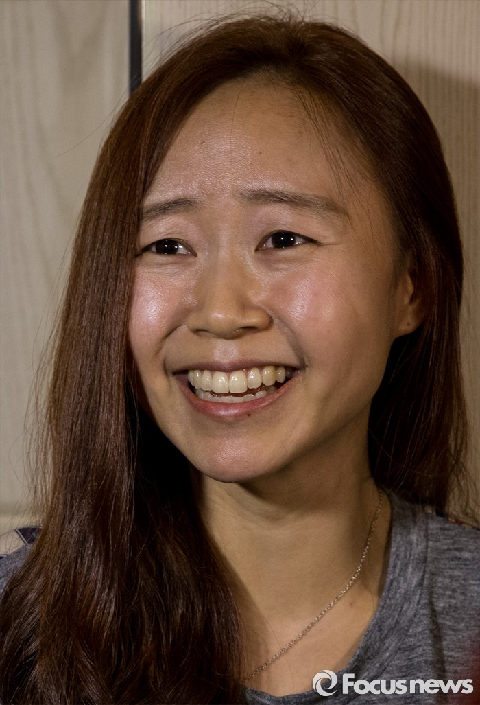 (서울=포커스뉴스) 9일 오후 서울 종로구 포시즌스 호텔에서 열린 이세돌 9단과 알파고의 '구글 딥마인드 챌린지 매치'에서 이 9단의 아내 김현진씨가 취재진의 질문에 답하고 있다.