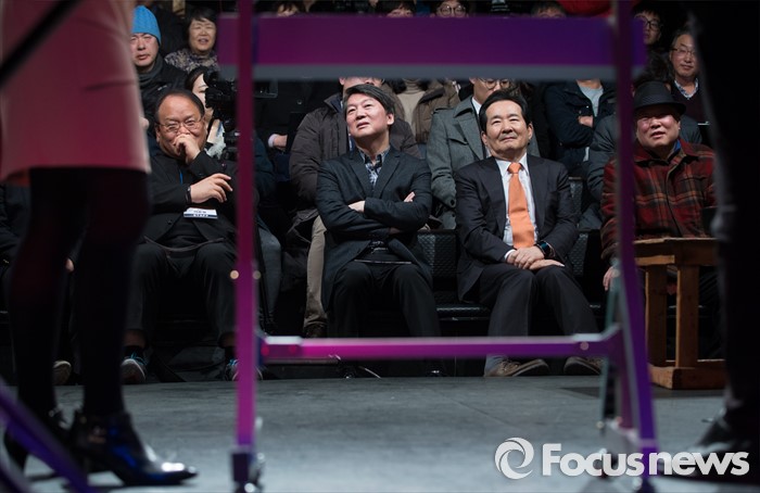 (서울=포커스뉴스) 안철수 국민의당 상임공동대표가 9일 오후 서울 종로구 아름다운극장에서 열린 인공지능과 바둑 심포지움 콘서트 '이세돌-알파고 바둑 대국'에 참석해 정세균 더불어민주당 의원과 관람하고 있다.