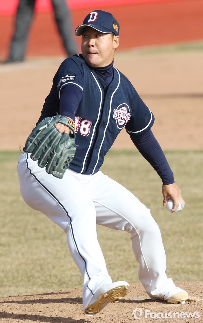(수원=포커스뉴스) 9일 수원 kt위즈파크에서 열린 2016 KBO리그 시범경기 두산-kt 경기에서 9회말 두산 마무리 이현승이 등판해 투구하고 있다.