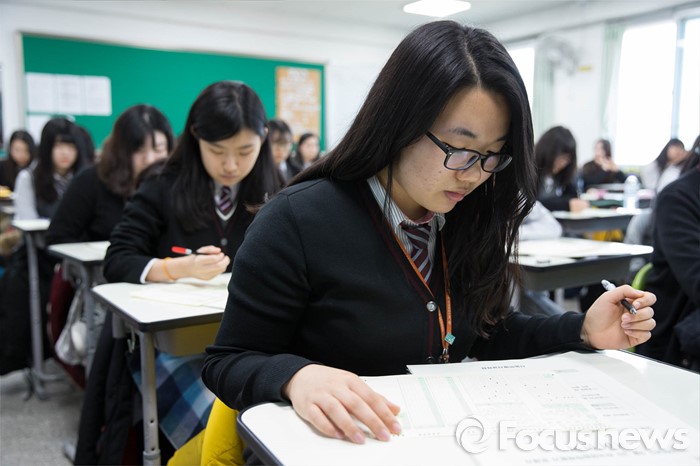 (서울=포커스뉴스) 올해 첫 전국학력평가가 실시된 10일 오전 서울 서대문구 명지고등학교에서 3학년 학생들이 시험을 치르고 있다.