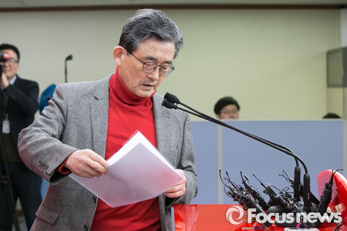 (서울=포커스뉴스) 이한구 새누리당 공천관리위원장이 10일 오전 서울 여의도 당사에서 2차 공천 결과 발표를 위해 단상에 오르고 있다.