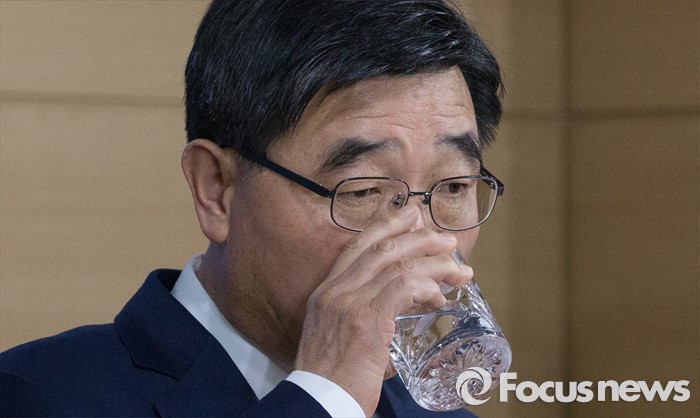 (서울=포커스뉴스) 이기권 고용노동부 장관이 10일 오전 서울 종로구 정부서울청사에서 노동시장 이중구조 개선 및 상생고용촉진 대책과 관련한 브리핑을 마치고 물을 마시고 있다.