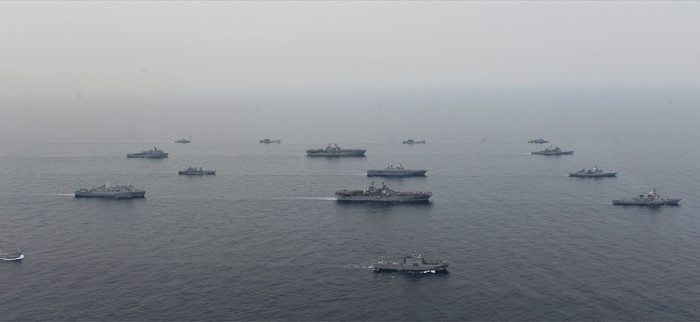 (서울=포커스뉴스) 연합상륙훈련 ‘쌍용훈련’에 참가중인 한·미 해군 함정들이 지난 8일 동해상에서 해병대 병력과 상륙장비를 적 후방으로 투사하기 위한 호송기동을 하고 있다. <사진제공=해군>