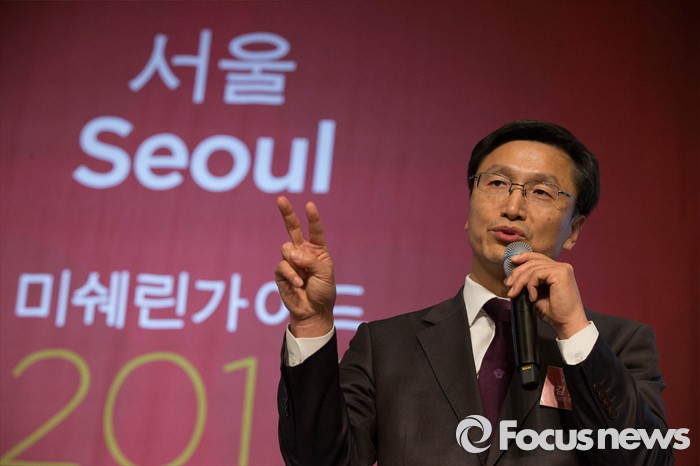 (서울=포커스뉴스) 10일 오전 서울 종로구 포시즌스 호텔에서 열린 미쉐린 가이드(미슐랭가이드) 2017 서울편 발간 기자회견에서 김보형 미쉐린코리아 사장이 발표를 하고 있다.