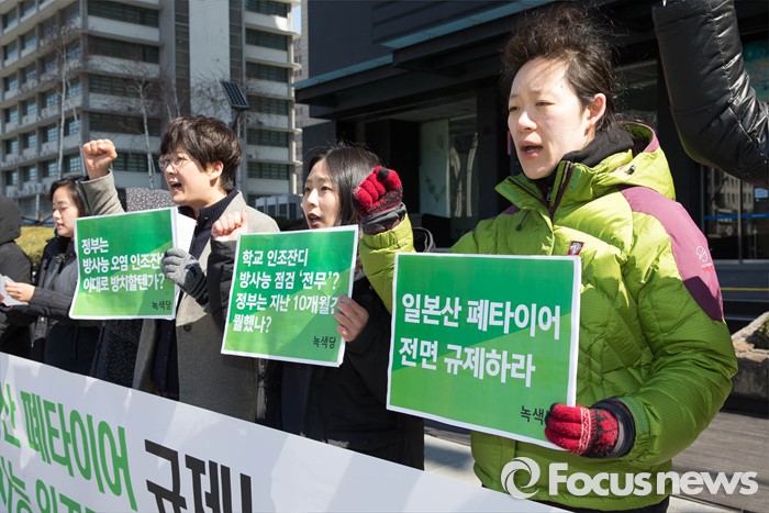 이날 녹색당과 청소년녹색당은 이날 기자회견을 통해 지난 2011년 후쿠시마 참사 이후 전국 751개교의 인조잔디 조성에 일본산 폐타이어가 사용됐다며 정부의 조사를 요구했다.