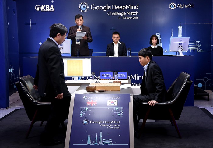 (서울=포커스뉴스) 바둑기사 이세돌 9단이 10일 오후 서울 종로구 포시즌스호텔에서 구글 딥마인드 챌린지 매치, 인공지능 바둑프로그램 알파고와의 두번째 대국을 시작하기 위해 자리에 앉고 있다. 왼쪽은 알파고의 대리인 아자 황 박사. <사진제공=구글>