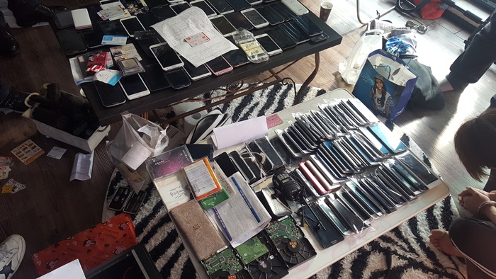 경찰은 현재 스포츠 도박 총책과 나머지 사무실 운영자들을 추적하고 있다.불법 스포츠 도박사이트를 운영하던 서울 강남구 논현동 빌라 현장에서 대포폰 등 압수품이 발견됐다. <사진제공=서울 강북경찰서>