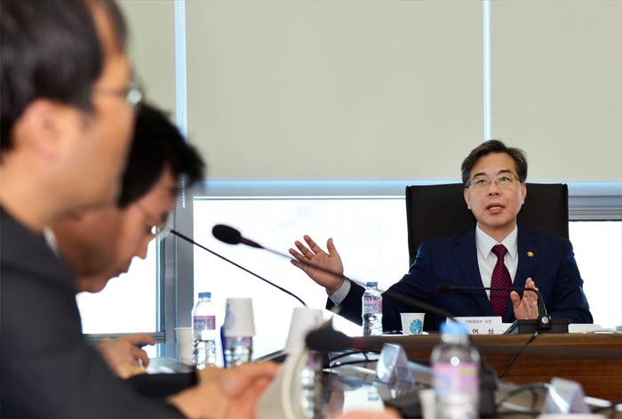 (대구=포커스뉴스) 송언석 기획재정부 차관이 R&D 재정 지원 사업 점검 차 10일 대구 소재 첨단의료복합단지를 현장방문해 간담회를 갖고 있다. <사진제공=기획재정부>