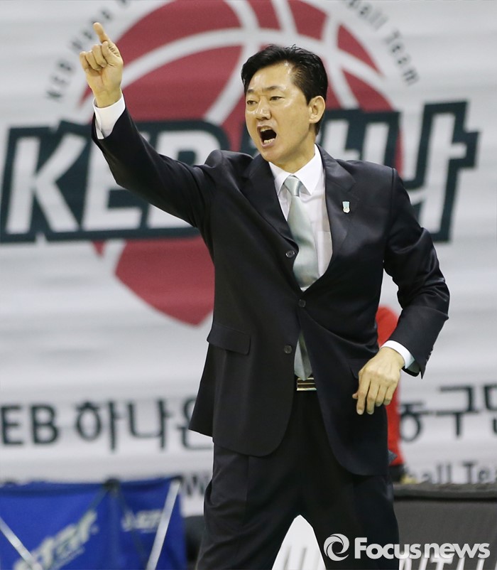(부천=포커스뉴스) 10일 부천체육관에서 열린 2015-2016 여자프로농구 PO 1차전 KEB하나-KB스타즈 경기에서 KEB하나 박종천 감독이 경기중 선수들의 플레이를 독려하고 있다.
