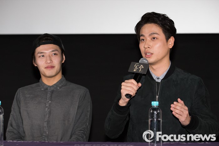 (서울=포커스뉴스) 10일 오후 서울 강남구 코엑스 메가박스에서 열린 영화 '동주'의 관객과의 대화에 참석한 배우 박정민이 관객 질문에 답변하고 있다. 왼쪽은 배우 강하늘.