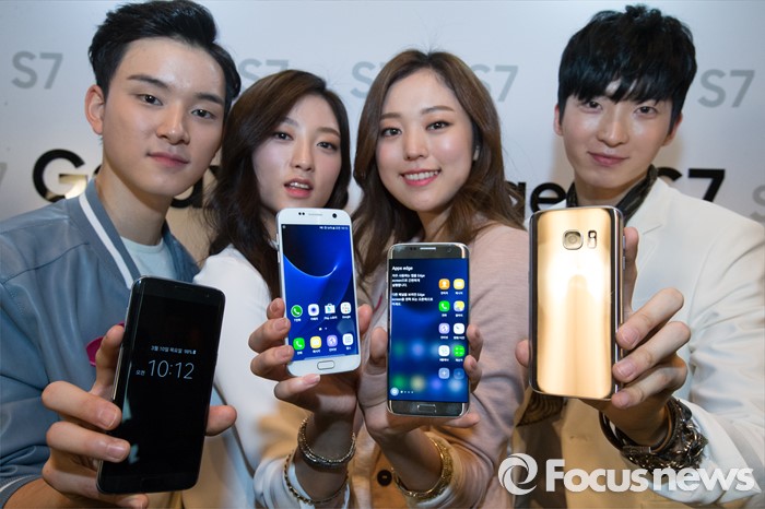 이날 출시된 갤럭시S7·S7 엣지의 국내 출고가는 32기가바이트(GB) 기준 각각 83만6000원, 92만4000원으로 책정됐다. 64GB 모델은 갤럭시S7이 88만원, 갤럭시S7 엣지가 96만8000원이다.(서울=포커스뉴스) 10일 오전 서울 중구 신라호텔에서 삼성전자의 스마트폰 '갤럭시 S7 엣지와 갤럭시 S7'을 모델들이 선보이고 있다. 이번 제품은 듀얼 픽셀과 F1.7 조리개 탑재, 방수·방진과 대용량 배터리가 탑재되어 있다. 2016.03.10 허란 기자