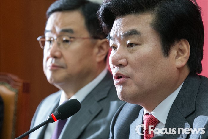 (서울=포커스뉴스) 원유철(오른쪽) 새누리당 원내대표가 11일 오전 서울 여의도 국회에서 열린 원내대책회의에 참석해 모두발언하고 있다.