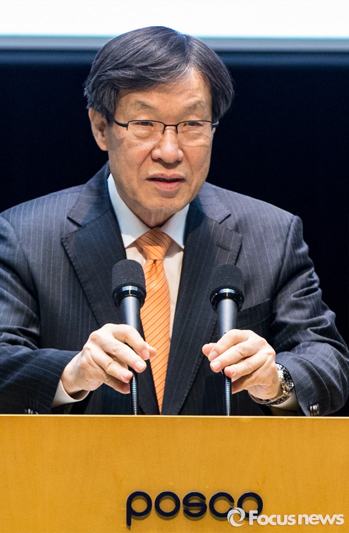 (서울=포커스뉴스) 11일 오전 서울 강남구 포스코센터에서 열린 정기주주총회에 참석한 권오준 포스코 회장이 인사말을 하고 있다.