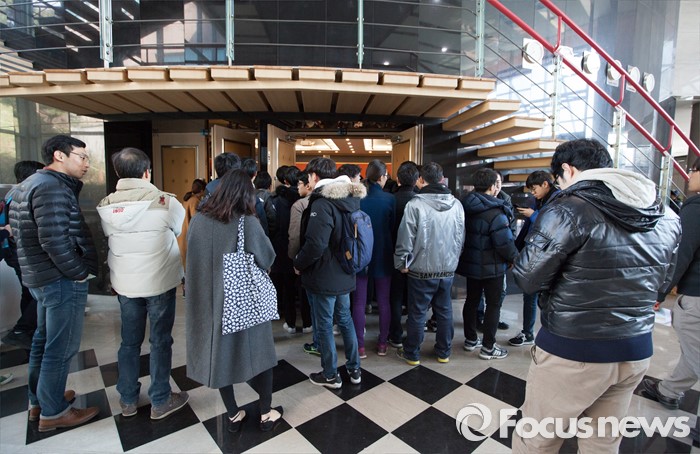 (대전=포커스뉴스) 이세돌 9단과 겨루는 인공지능 컴퓨터 알파고를 개발한 구글 딥마인드 최고경영자 데미스 하사비스가 11일 오후 대전 유성구 한국과학기술원(KIST)에서 '인공지능과 미래' 라는 주제로 강연이 열렸다. 강당에 들어가지 못한 학생들이 입구에서 강연을 기다리고 있다.