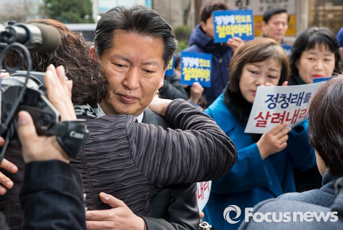 | △ 지지자들과 포옹하는 정청래 |