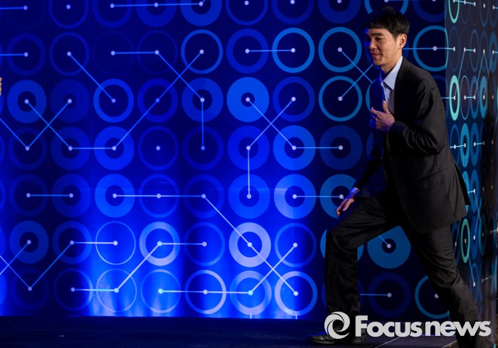 (서울=포커스뉴스) 12일 오후 서울 종로구 포시즌스호텔에서 열린 구글 딥마인드 챌린지 매치 제3국 기자회견에 참석한 이세돌 9단이 무대에 오르고 있다.
