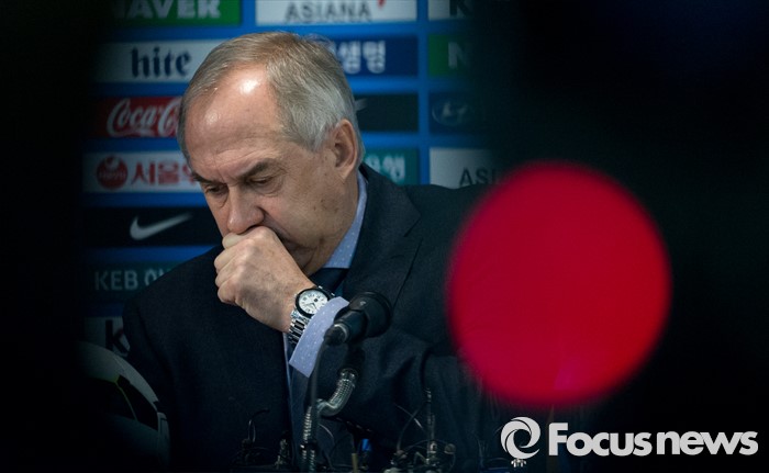 (서울=포커스뉴스) 14일 오전 서울 종로구 대한축구협회에서 울리 슈틸리케 한국축구대표팀 감독이 레바논과의 2018년 러시아월드컵 아시아지역 2차예선 7차전(24일 오후 8시·안산 와 스타디움)과 태국 원정(27일)에 출전할 대표팀 명단을 발표 후 기침을 하고 있다.