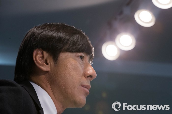(서울=포커스뉴스) 신태용 올림픽 축구대표팀 감독이 14일 오전 종로구 축구회관에서 올림픽 명단 발표 기자회견 중 취재진의 질문을 듣고 있다.