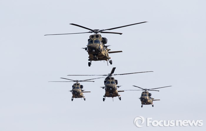 (영천=포커스뉴스) 10일 오후 제2작전사령부 예하부대에서 국산 헬기 수리온(KUH-1)이 육군항공·특공부대 전개훈련에 참가해 전술비행을 하고 있다.