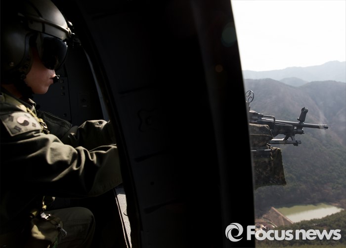 (대구=포커스뉴스) 10일 오후 제2작전사령부 예하부대에서 육군항공·특공부대 전개훈련에 참가한 국산 헬기 수리온(KUH-1)이 경북 대구와 영천 상공 일대를 전술비행하고 있다.