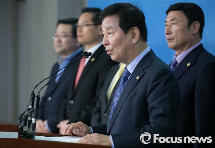 (서울=포커스뉴스) 20대 총선을 앞두고 공천 배제(컷오프)된 박대동 새누리당 의원이 14일 오후 서울 여의도 국회 정론관에서 시의원 및 당원들과 함께 공천 탈락 재심 요청 및 결과에 따른 무소속 출마 시사 등 입장 발표 기자회견을 하고 있다.