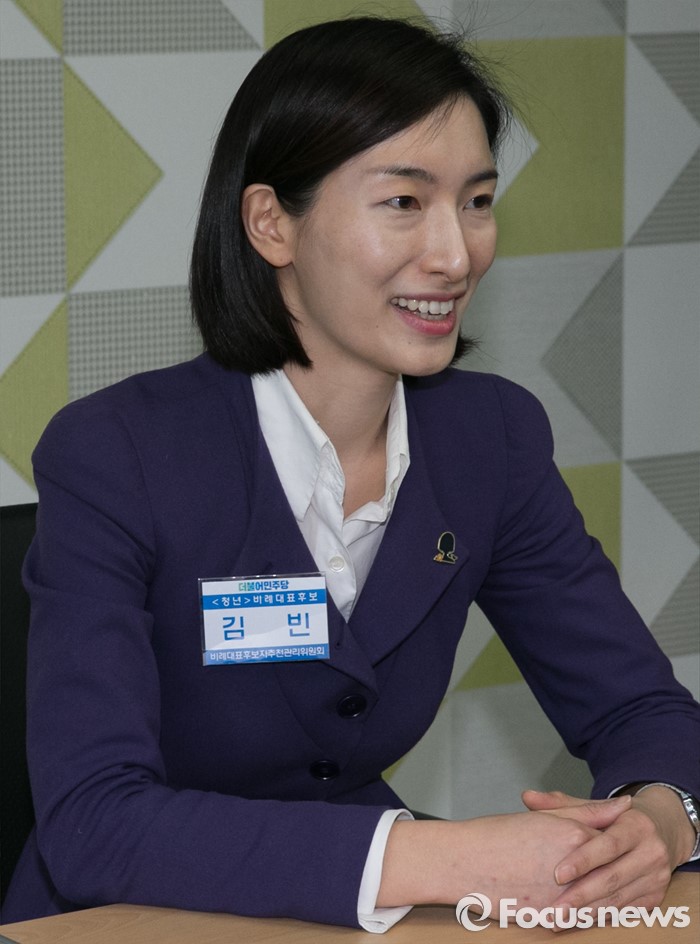 (서울=포커스뉴스) 20대 총선을 30일 앞둔 14일 오후 서울 여의도 더불어민주당사에서 열린 청년 비례대표 후보 면접에 참석한 김빈 후보가 공관위원들의 질문에 답하고 있다.