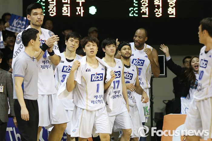 프리에이전트(FA) 선수 규정 중 '각 포지션별 공헌도 상위선수를 보유할 경우(가드 및 포워드 5위, 센터 3위) 해당 순위 내 선수를 영입하지 못한다'는 조항을 폐지했다. 선수연령 기준일도 현행 7월1일에서 1월1일로 변경한다. 2017년부터 적용된다.(안양=포커스뉴스) 13일 안양실내체육관에서 열린 2015-2016 프로농구 KGC-KCC 4강 플레이오프에서 KGC를 3승1패로 물리치고 챔피언결정전에 진출한 KCC 선수들이 기뻐하고 있다.2016.03.13 우정식 기자