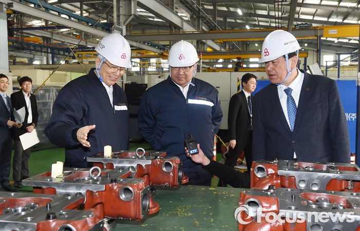 (공주=포커스뉴스) 유일호 부총리 겸 기획재정부 장관이 14일 오후 한-미 FTA 수혜기업인 충남 공주 소재 삼영기계(주)를 방문해 현장을 둘러보고 있다. <사진제공=기획재정부>