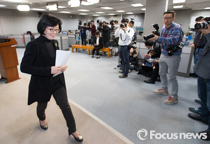 | △ 정론관 나서는 신명 |