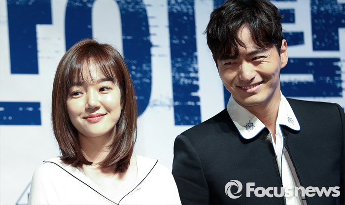 (서울=포커스뉴스) 15일 오전 서울 강남구 압구정 CGV에서 열린 영화 '시간이탈자' 제작보고회에 참석한 배우 임수정(왼쪽)과 이진욱이 미소를 짓고 있다.