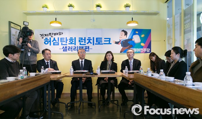 (서울=포커스뉴스) 김종인 더불어민주당 비대위 대표가 15일 오후 서울 여의도 한 카페에서 열린 경제할배와 허심탄회 런치토크 - 샐러리맨편 행사에 참석해 인사말을 하고 있다.