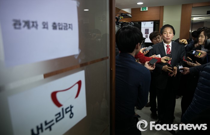 (서울=포커스뉴스) 박종희 새누리당 제2사무부총장이 15일 오전 서울 여의도 당사에서 이한구 공천관리위원장과 비공개 논의를 위해 이동하며 취재진 질문에 답하고 있다.