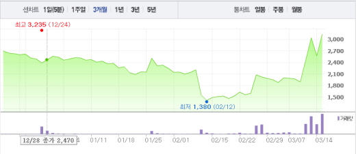가장 큰 폭의 상승세를 기록하고 있는 업체는 에이디칩스다. 에이디칩스는 15일 오후 1시1분 현재 전일 대비 무려 22.14%(570원) 상승한 3145원에 거래 중이다. 에이디칩스는 인공지능 핵심 부품인 마이크로컨트롤러칩을 만드는 업체다. 전날 15.2%의 주가 하락에도 불구, 이날은 22%대의 상승폭을 나타내고 있다.