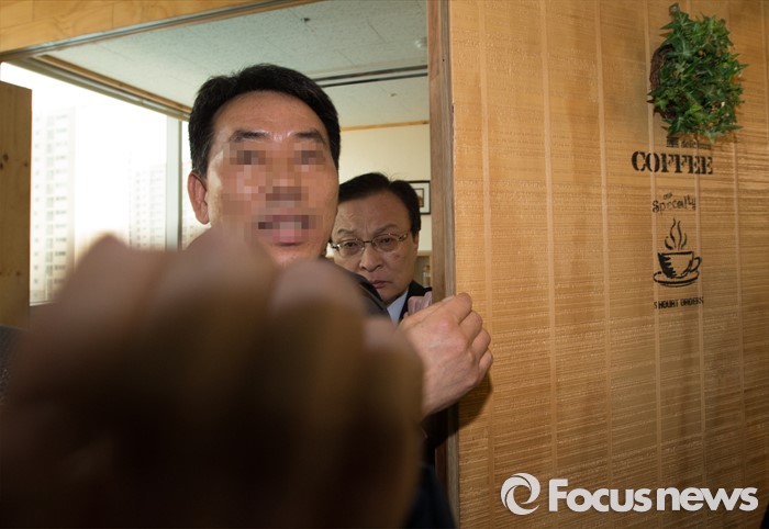 (세종=포커스뉴스) 이해찬 더불어민주당 의원이 공천 배재에 무소속 출마 입장을 밝힌 가운데 15일 오후 세종시 조치원읍 한 카페에서 학부모와 간담회를 가졌다. 간담회 시작하기 전 보좌관들이 취재진의 취재를 막고 있다.