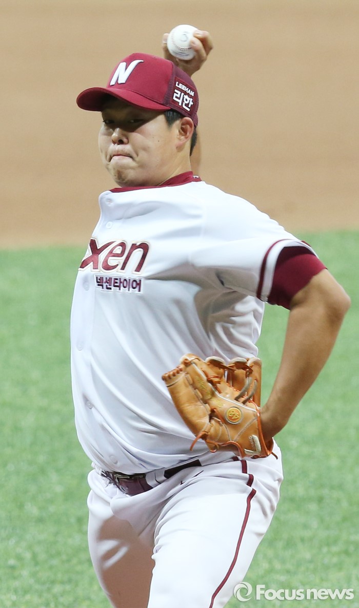 (서울=포커스뉴스) 15일 서울 고척스카이돔에서 열린 2016 프로야구 시범경기 SK-넥센 경기에서 넥센 선발투수 박주현이 힘차게 투구하고 있다.