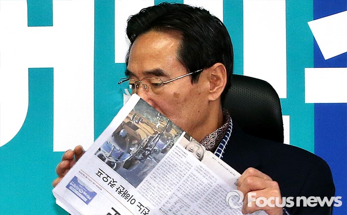 | △ 이해찬 컷오프 기사 신문 든 홍창선 |