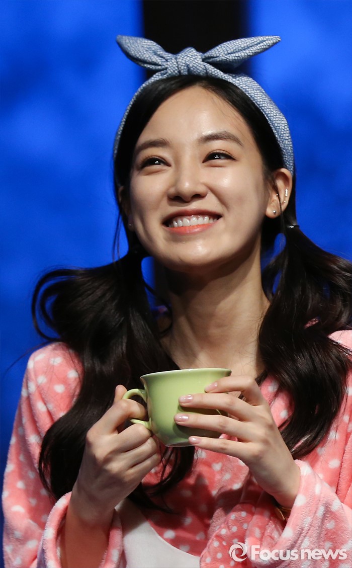 (서울=포커스뉴스) 15일 오후 서울 강남구 코엑스아트센터에서 열린 연극 '서툰사람들' 프레스콜에 참석한 배우 이주연이 주요 장면을 시연하고 있다.