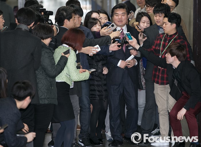 (서울=포커스뉴스) 원유철 새누리당 원내대표가 16일 오전 서울 여의도 국회에서 열린 비공개 최고위원회의에 참석하며 취재진 질문에 답하고 있다.