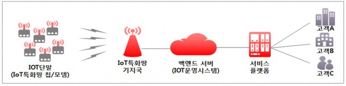 이형희 SK텔레콤 사업총괄은 “국내 벤처와 스타트업이 마음껏 뛰어 놀 수 있는 놀이터를 제공한다는 데 이번 프로그램의 의의가 있다”며 “결국 기존 패러다임을 뛰어 넘는 이러한 새로운 접근 방식들이 IoT 기반 융복합 신산업 개척에 일조할 것”이라고 전망했다.IoT 전용망 구성도.<그림제공=미래부>