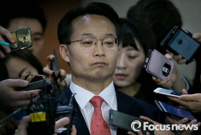 (서울=포커스뉴스) 공천 배제(컷오프)된 조해진 새누리당 의원이 16일 오전 서울 여의도 국회 정론관에서 공천관리위원회의 결정에 반발하는 내용의 기자회견을 마친 뒤 취재진 질문에 답하고 있다.