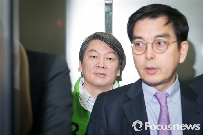 (서울=포커스뉴스) 안철수 국민의당 상임공동대표(가운데)가 16일 오전 서울 마포구 국민의당 당사에서 정호준 의원의 입당 소식을 전한 후 길을 나서고 있다.