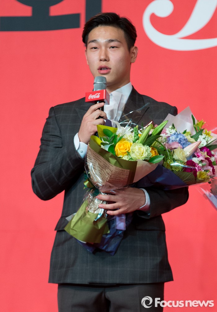| △ 신인상 수상 소감 전하는 윤성빈 |