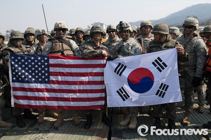 (이천=포커스뉴스) 16일 오전 경기도 이천시 7공병여단 도하훈련장에서 한국군 제7공병여단 도하대대와 미군 제2전투항공여단 공병대대의 '한·미 연합 소부대 도하훈련'을 마친 장병들이 기념촬영을 하고 있다.